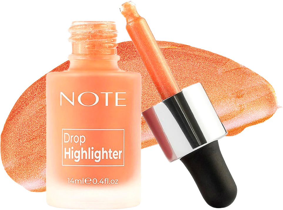 Our Note Drop Highlighter will add instant radiance to your complexion. Its liquid, lightweight, non-greasy texture is bursting with a high concentration of a fine pearl powder to create a light-catching luminosity. It applies easily and evenly helping to blur small imperfections. Build your glow from natural, subtly luminous to bold with its buildable formula. Mix it with your favorite Note foundation to create a more dewy finish with a bit of glow.